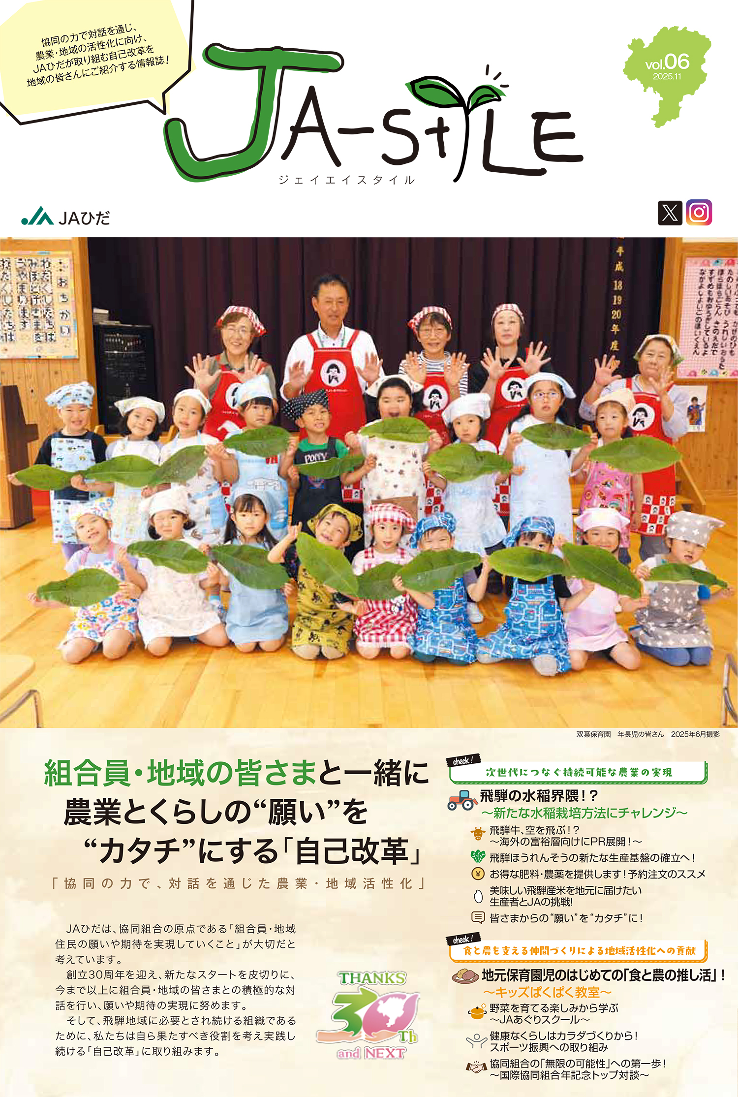 JAひだが「農業者の所得増大の実現」や「協同による地域の活性化への貢献」に向けて取り組んできた活動の一部をご紹介します。