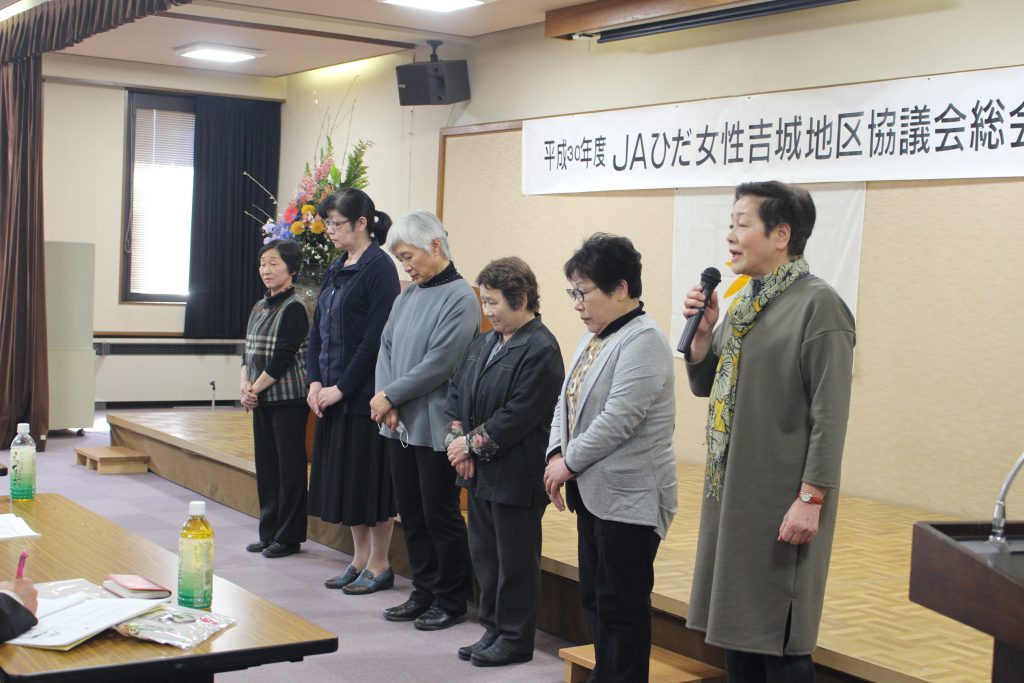 JAひだ女性吉城地区協議会は4月8日、飛騨市古川町のJAひだ吉城営農センターで平成30年度JAひだ女性吉城地区協議会を行い、各地区の役員やJAひだなど約40人が参加しました。